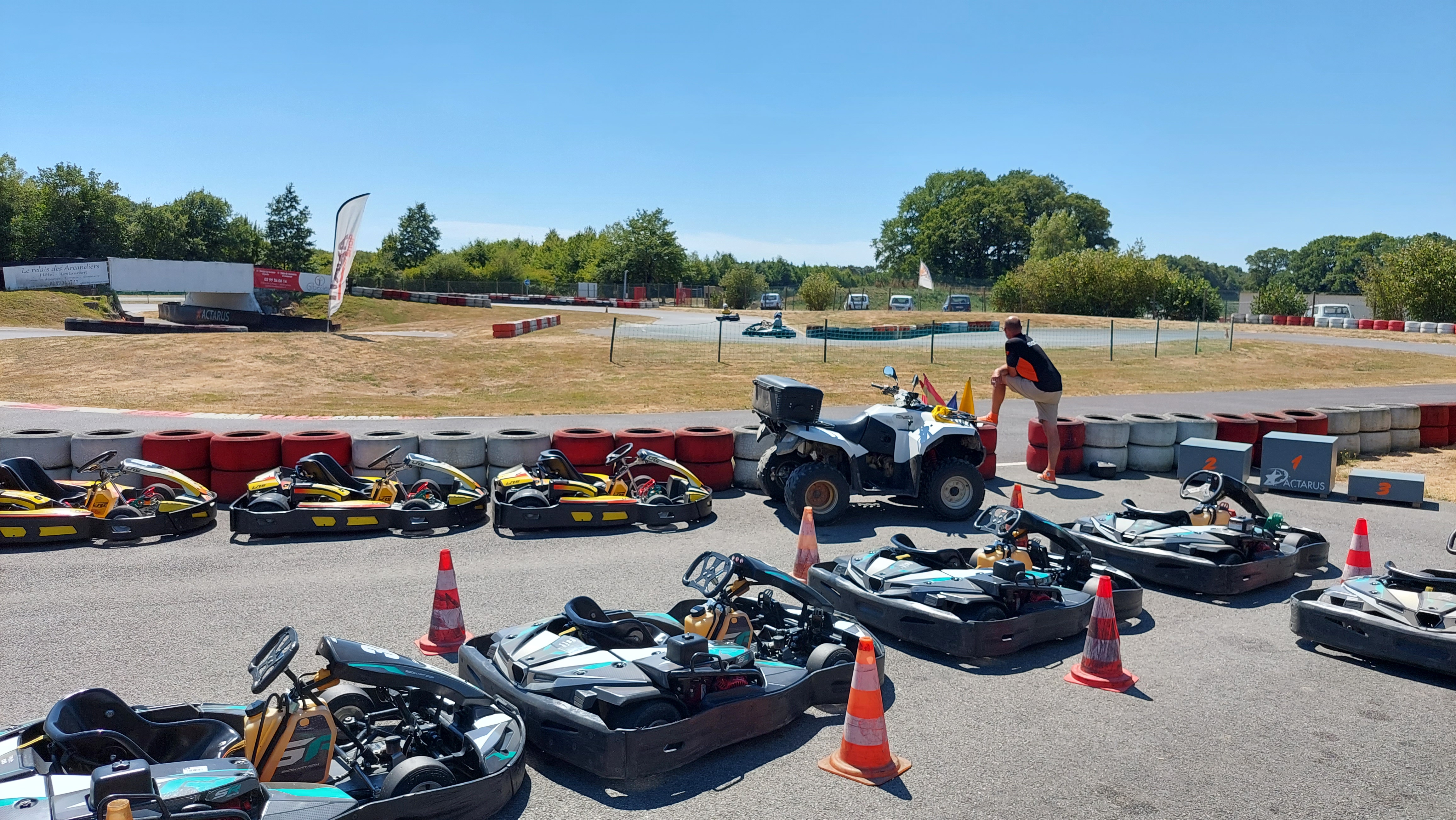 Après avoir attendu devant le portail fermé a 14h(heure d ouverture) aussitôt entré à l accueil il a fallu nous mettre dans la 1ere cession venu avec des habitué du lieux sans avoir le temps de jeter un œil en terrasse pour s' empreigné du lieu en prenant une boisson par exemple Du coup nous avons effectué seulement 3 cession car le briefing également fut assez froid (attention à ne pas abîmé ce qu'il reste de pelouse grillé...) Le matériel et la piste sont en bon état mais le fait que le kart sont resté exposé en plein soleil la journée à rendu les baquets bouillant Il est dommage de ne pas avoir n'y sur papier ou sur écran les temps au tour réalisé par chaque pilote mais uniquement le meilleur tour sur une cession d entraînement... Je précise que nous sommes respectueux du matériel et des règles en pistes d'où cet avis mitigé car après avoir parcouru une bonne dizaine de karting en France c est la 1ere fois que je ressent se sentiment là...
