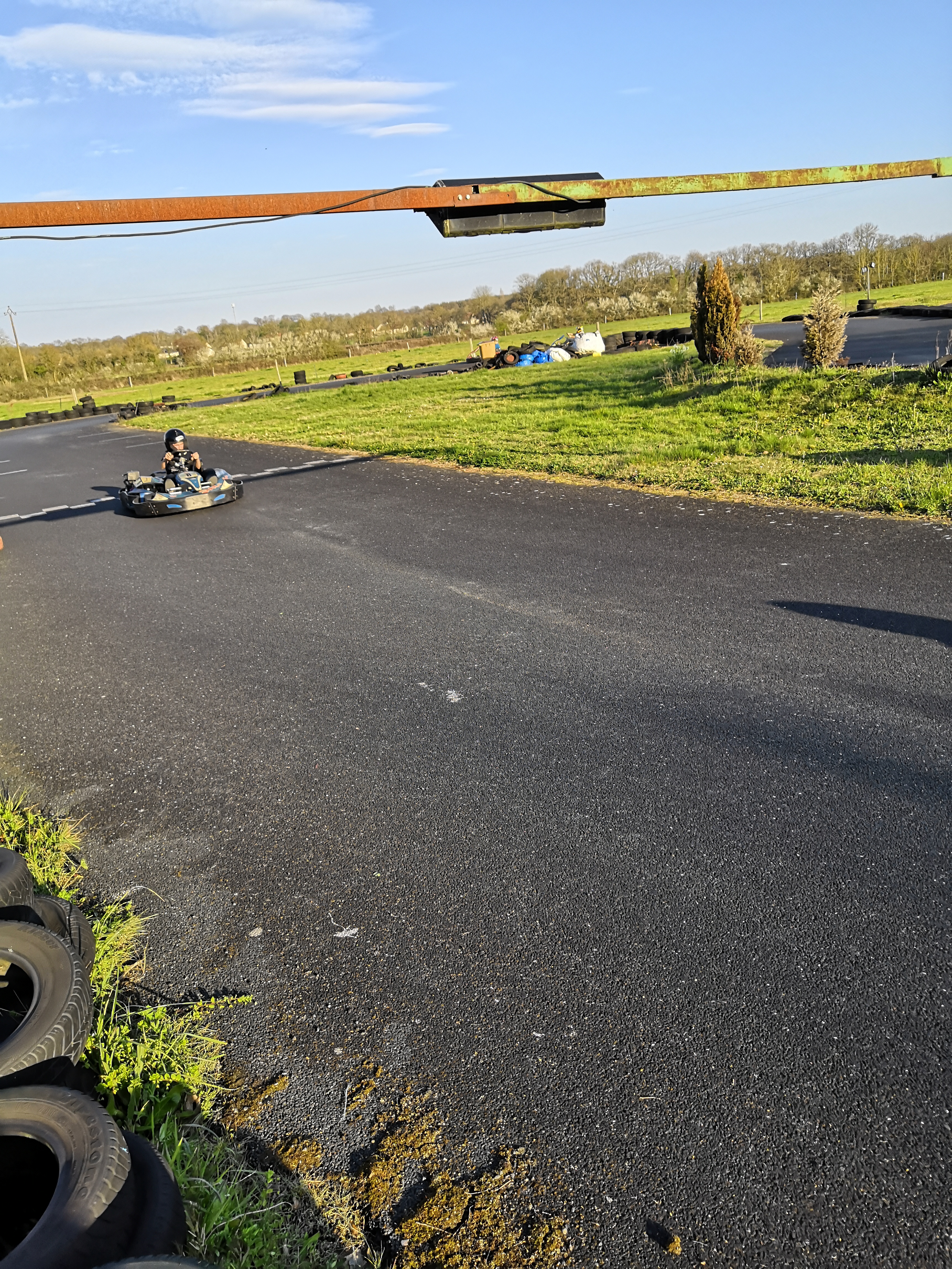 A l'arrivée apres être entré dans la ferme, ld doute et à l arrivée : belle découverte accueilli par la maître des lieux, discute, bonne franquette mais des kartings avec les feuilles de temps, petit circuit avec de beaux virages et des kartings qui marchent bien. Comme dit précédemment atypique, au milieu des champs avec des chèvres en visu. Allez y ici c est pas la compétition mais la piste c c'est un billard pas de trou pas de tremblement... apres avoir demandé au propriétaire bitume avec une épaisseur conséquente qui préserve vos bras vos doigts et votre dos et çà compte